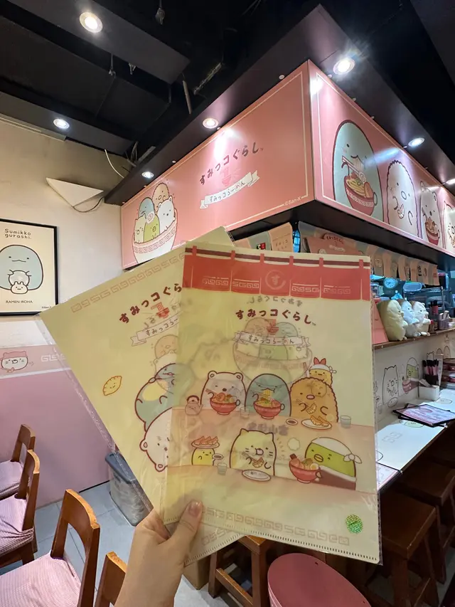 食完嘢,重頭戲嚟喇...就係買精品!我哋真係忍唔到手,見到個個食客都買!真係好靚。最後買咗個角落生物環保袋,有個鎖匙扣送。跟住係社交平台 like & share post,又送咗個 Folder。最後鐘意收藏既我,買埋呢個超靚嘅珍藏版拉麵碗!