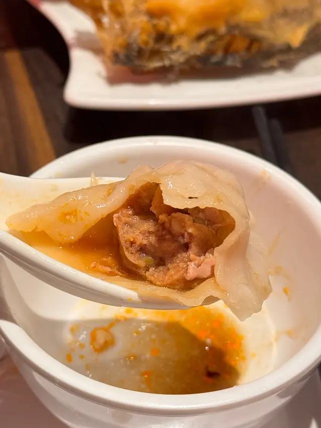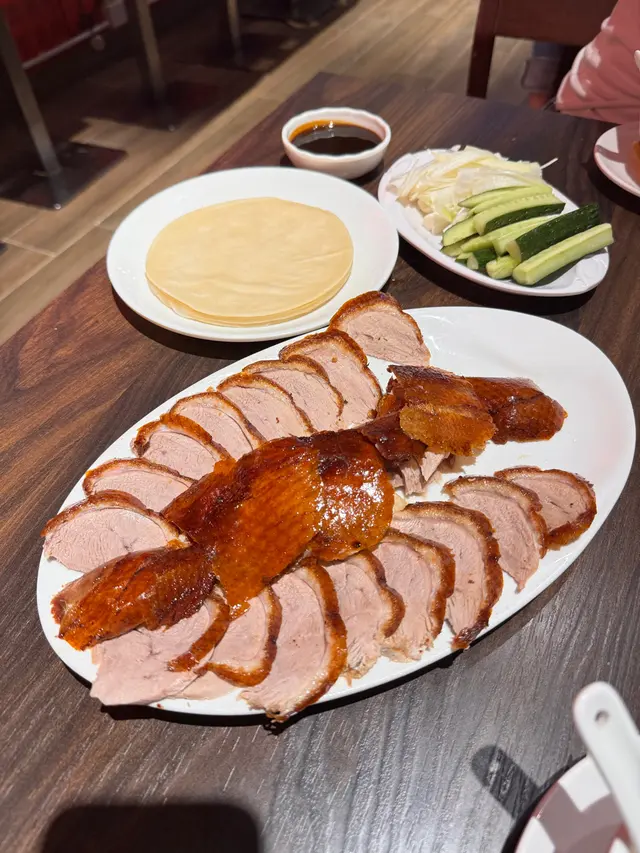 主角黎啦,基本上每枱都必叫片皮鴨,因為真係好抵食,$168有半隻鴨,呢度既片法係皮肉一齊,我比較中意咁樣,食落有鴨皮既香同鴨肉既甜。鴨皮烤得酥脆,鴨肉肉質鮮嫩,摩摩皮Q彈,配埋青瓜、蔥絲、甜麵醬 (可任fill) 真係好好味。唯一問題係份量太多啦,我地2個女仔食唔晒。