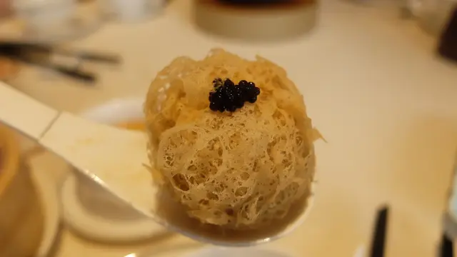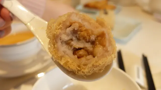 外層炸至香脆又鬆化,內𥚃的餡料亦相當多;頂層放有少許魚籽增添名貴。