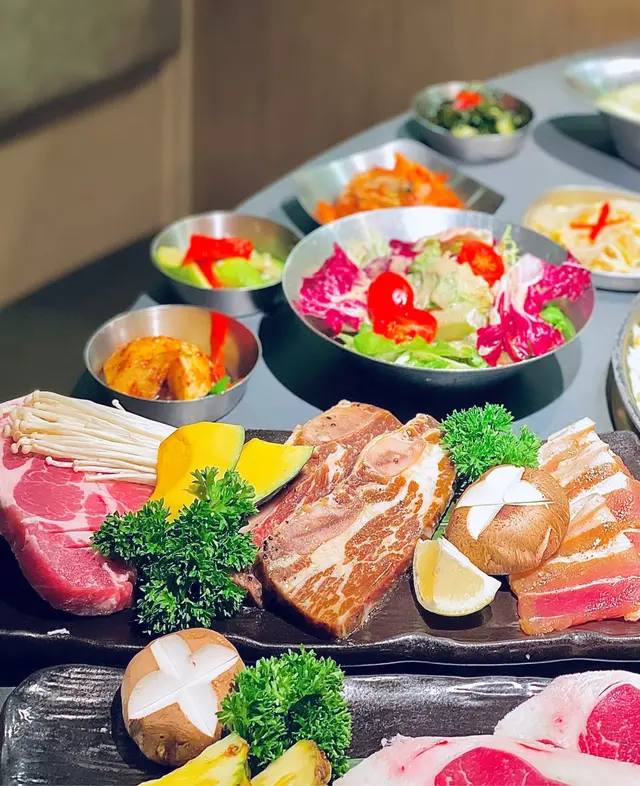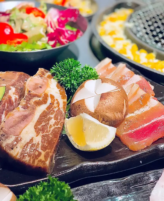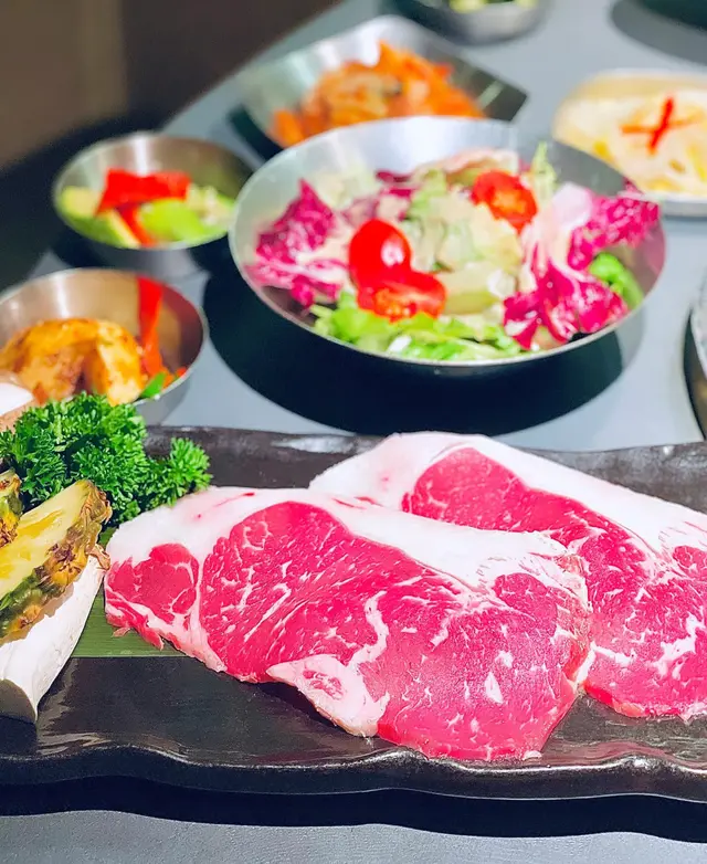 個餐入面有和牛肉眼、韓式LA牛仔骨、韓國豬梅花肉同醬油豬五花;