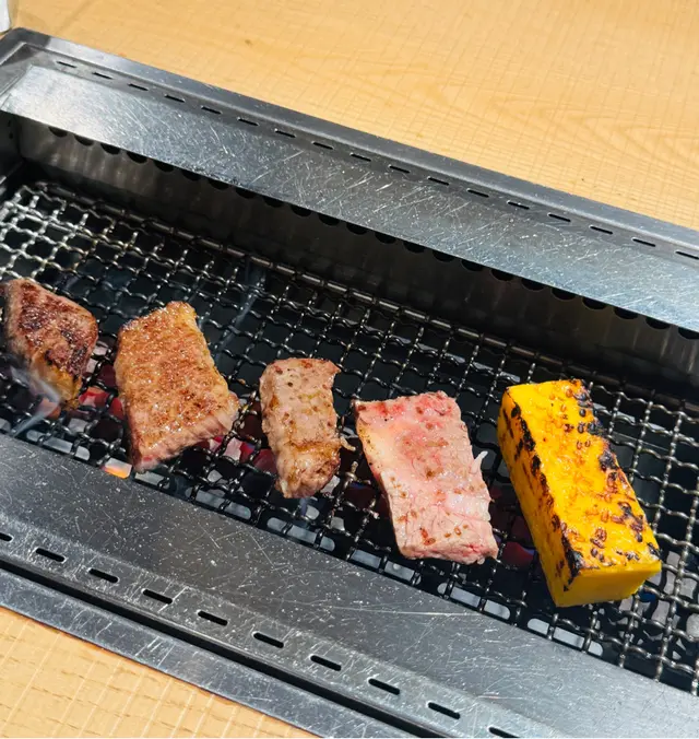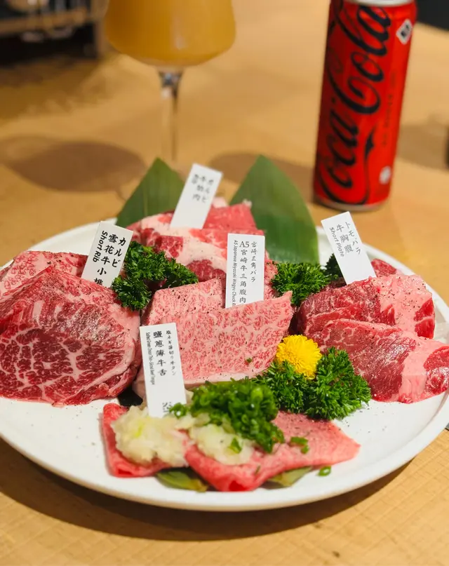 宮崎牛三角腹肉入口即化,油脂分佈細緻均匀,烤至微焦的外層帶著堅果香氣,搭配淡淡醬油。完美襯托出牛肉的甘香。牛胸腹則以濃郁肉味聞名,纖維略粗但不失彈性,越嚼越能感受到脂香滲出。牛小扒烤至表面焦脆、內裡粉嫩,肉汁豐盈卻不膩口,伴隨淡淡脂香令人回味。