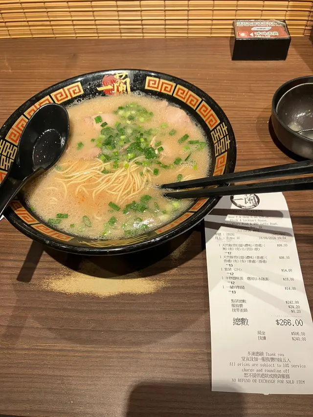 仲係甘多遊客捧場 BoeyLam等級32024-05-193K 瀏覽 關注 疫情到依家,好耐未食過,今晚特登出銅鑼灣食,去到竟然要排隊,最後等左8、9個字先入得,唔知係咪今日星期六多人D呢。跟上潮流乜都電子化自己搞掂,如果唔想掃code落單,可以去櫃檯落,但已經要即刻比埋錢🫣食拉麵都係鐘意畫紙仔實在D😃同老公一樣,叫左(豚骨拉麵濃味)我無加其他配料。麵來到之後,如果以$98一碗拉麵來講,第一眼感覺好寡,雖然麵質感軟硬度適中,但味道都係淡,豚肉唔錯,有入口即溶嘅感覺,但整體同我食開果間一X差太遠,無論賣相、味道都只可以話唔係我杯茶。可能太耐無食,期望太高啦!135以上食評乃用戶個人意見 , 並不代表OpenRice之觀點。讚好分享仲係甘多遊客捧場 天然豚骨拉麵專門店一蘭 https://s.openrice.com/QrbT0GtLJ00檢舉 張貼 評分2味道3環境1服務4衛生1抵食用餐日期2024-05-18等候時間40 分鐘 (堂食)人均消費$98 (晚餐)