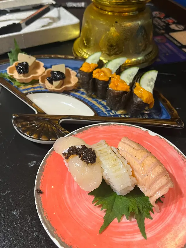 壽司: 花之戀, 黑松露帶子, 左口魚, 三文魚腩🍣