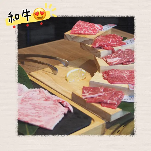 兩人都有張好大嘅卡位🩵枱上醬汁出面飲品甜品等攞食物地方都相當乾淨。店員先放低一啲A5 同M6和牛唔同部位,包括一塊和牛肉眼,點生蛋汁食,非常美味。依個價錢A5和牛任食坊間真係唔多。雪糕仲movenpick 幾隻味揀🍨