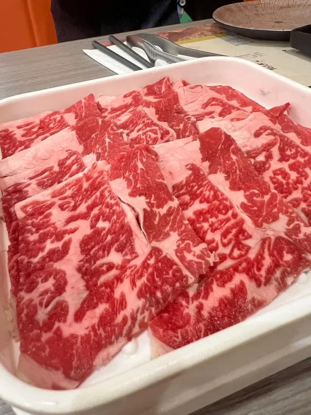 壽喜燒可以轉豬骨湯,夾埋佢啲火鍋肥牛都好正, encore咗好多碟。