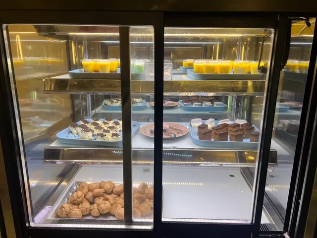 自助區有茄瓜類、炸物、凍前菜(中華沙律、魚皮、麻醬豆腐)、甜品、咖啡、任飲罐裝