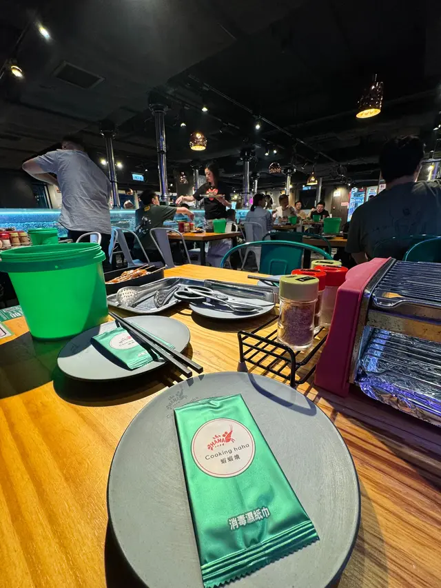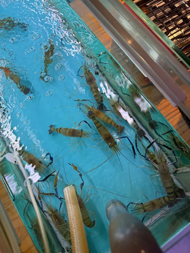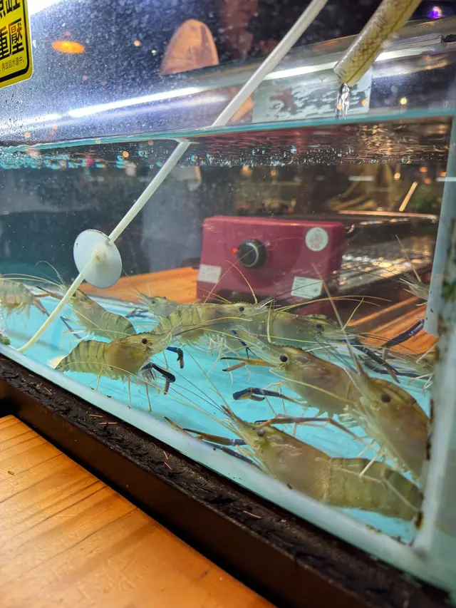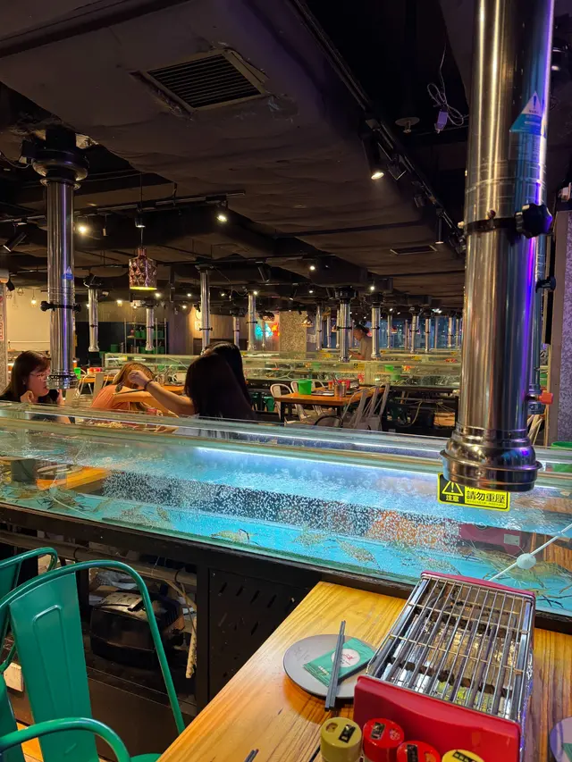 蝦同海鮮都好生猛,每台有一個爐,旁邊長長的魚缸即夾即燒。