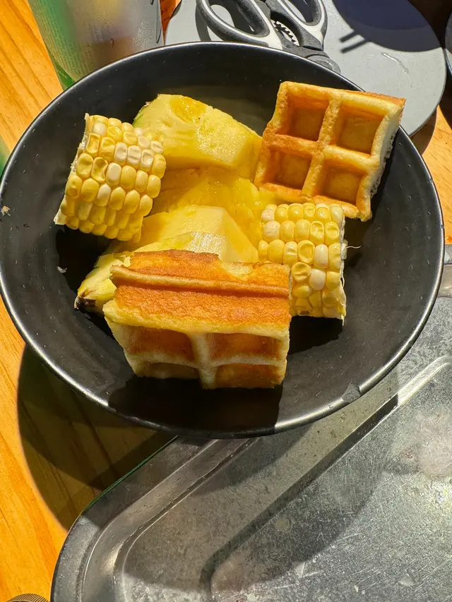 食完海鮮肉類鹹味嘅嘢,到最後當然都汽水雪糕甜品啦!我就自製咗烤窩夫加阿波羅雪糕球,仲有香甜多汁的燒菠蘿,甜品成為了完美的結局。