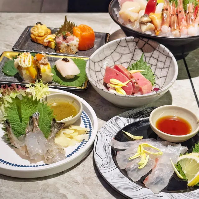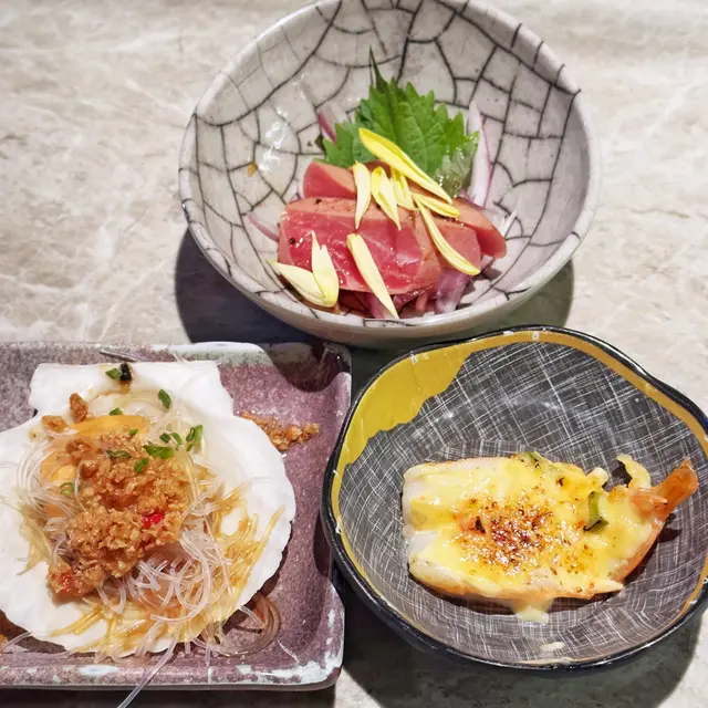 久休復出嘅🏯和風吞拿魚🐟他他酸甜開胃,好啱我口味🥰,泰式虎蝦🦐配咗酸辣嘅泰式🇹🇭醬汁同埋生🧄蒜片,風味十足!而呢期🎊新推出嘅薄🔪切活立魚🐟就十分之鮮甜🤤,配埋特製醬汁同埋🌼菊花花瓣一齊食😋味道更加豐富!