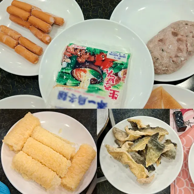 丸類:魚丸、魚滑、蟹籽丸、龍蝦丸、海膽丸...等等。餃類:芝士腸、韭菜餃:餡料飽滿,夠哂爽口、魚皮餃、魚腐...等等。蔬菜類:金菇、玉子豆腐、炸魚皮:口感香脆、炸響鈴、生根、娃娃菜、唐山菜...等等。麵類:烏冬、粉絲、米線、出前一丁...等等