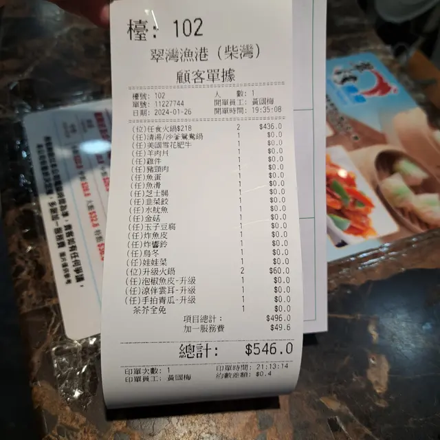 今日去咗柴灣嘅翠灣漁港,店舖環境大,店員服務好。今晚2小時任飲任食火鍋,星期一至五晚上8點前都係 $218/1位,真係超抵食;另外可以加 $30 轉升級版,送埋特級手切安格斯一碟及珊瑚蚌一碟,特級手切安格斯:牛味濃郁、珊瑚蚌:珊瑚蚌,另外再叫多兩碟涼拌小食,有涼拌雲耳同手拍青瓜,口感爽脆