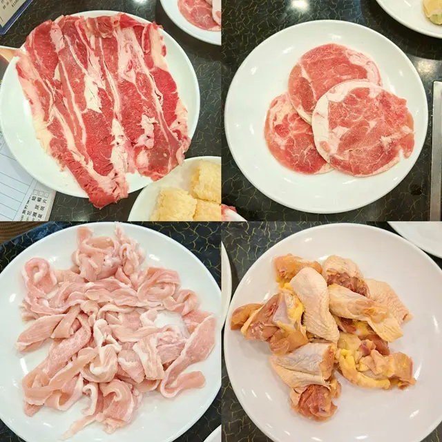 食材有數十款選擇,包括有肉類:美國雪花肥牛、安格斯牛肉粒、羊肉片、雞件、豬頸肉...等等。海產類:水魷魚、鱔片、海生蝦、脆鯇片、珊瑚蚌、鮮蝦滑...等等