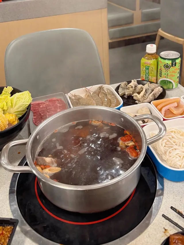然後到打邊爐啦🙌🏻 有多款肉類✧丸✧海鮮🥩 先去自助區揀自己鍾意嘅醬料 再點選埋自己喜歡嘅火鍋湯底🍲 有蕃茄薯仔濃湯鍋◦香茜皮蛋鍋◦胡椒豬肚雞鍋◦川椒麻辣鍋…可以揀鴛鴦湯底 我們選了台式藥燉排骨鍋 ☺️