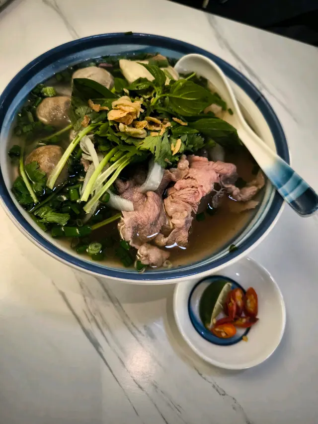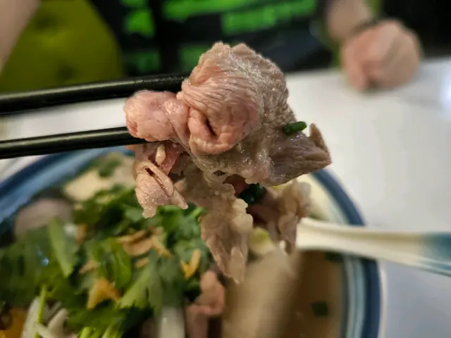 散點,牛三寶湯粉 HKD73,包括生牛肉、牛腩和牛丸配金邊粉,沒想到送上枱時如此大碗,食材份量都不少。先喝一口湯底,湯底清甜,金邊粉都滿滿清湯甜味。生牛肉還帶點粉嫩,牛丸牛味香濃,牛腩都煮得淋。金邊粉內還有芽菜、洋蔥、芫茜、蔥粉和九層塔,配上清湯底好味。