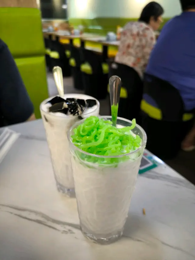 散點凍椰汁涼粉冰 HKD18,散點加配優惠價,椰汁冰的冰是打碎,入口冰涼透心,味道不甜,加入涼粉又可消暑。跟餐凍椰汁珍多冰,椰汁和冰一起打碎,所以味道不甜,又有粿條吃,不錯。