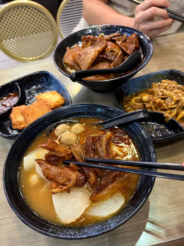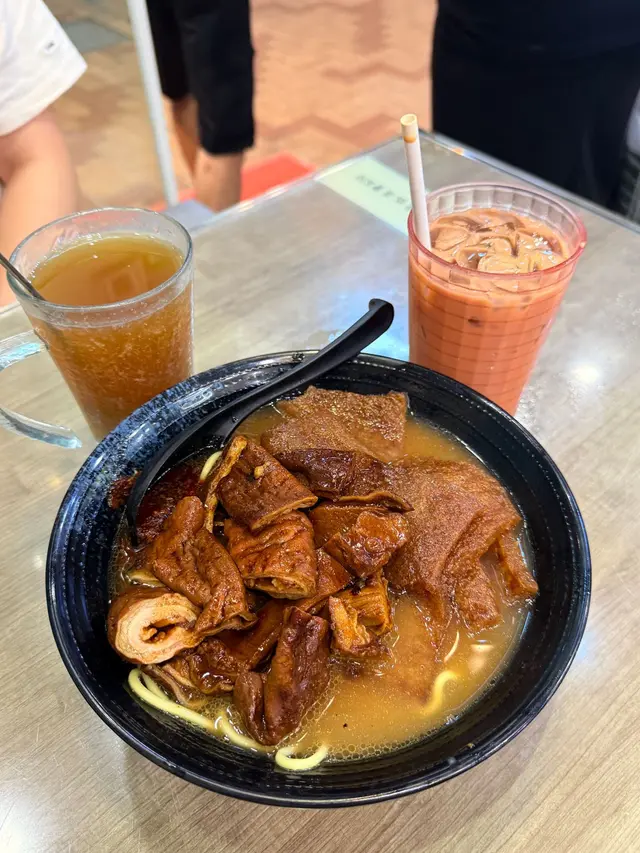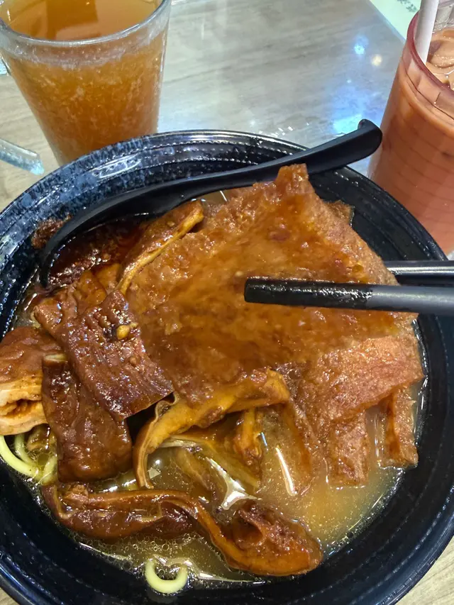 呢碗配搭好邪惡,豬大腸無腥味又軟腍,入晒味;砂薑豬肚腍中帶嚼勁,但又唔難咬;豬皮厚身一樣軟腍,完全吸晒啲湯汁同辣汁,食落好過癮。油麵煮得啱啱好淋得嚟仲算有口感 。成碗麵同餸份量好足夠,湯底真材實料不加味精每日熬製同個辣醬都好出色 。