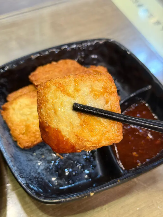 炸到金黃脆卜卜,外層好香口,包咗層腐竹喺面,咬開到入面先係墨魚餡,點埋個甜辣醬,鹹香微辣香口好惹味,啱晒做開胃小食。每件份量啱啱好,幾有驚喜!