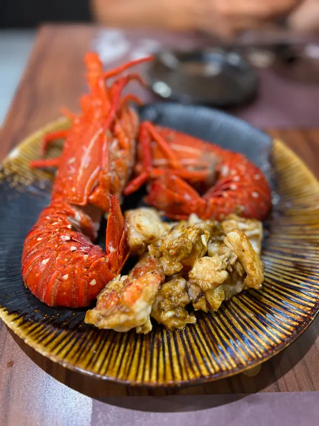 刺身,活龍蝦,南非鮑魚,鵝肝多士,牛肉,野菜,炒飯。除咗套餐仲可以揀魚生丼飯,例如角切魚生,炙燒丼。燒鮑魚都大大隻,切件都有六舊,食落有牛油香氣夠Juicy。龍蝦啖啖肉,仲有龍蝦膏汁同肉炒埋一齊,夠彈硬牙,果然係新鮮。牛肉薄切加咗蔥粒蒜粒,再了解你想幾成熟。整個餐份量好足夠,捧住個肚回家。
