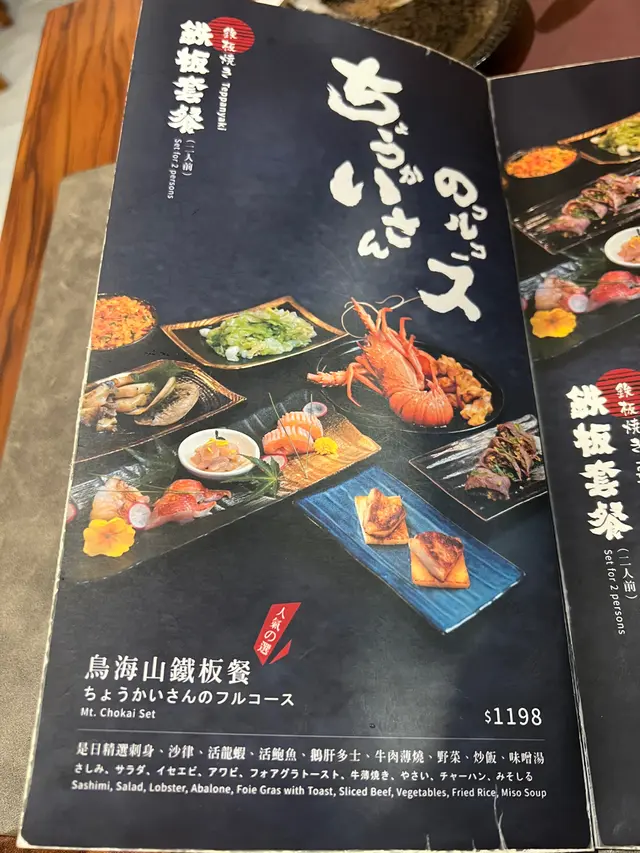 廚師鐵板位置,煎起海鮮,牛肉嘅時候香氣撲鼻。Menu有五六款鐵板餐,龍蝦套餐包含四款