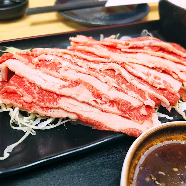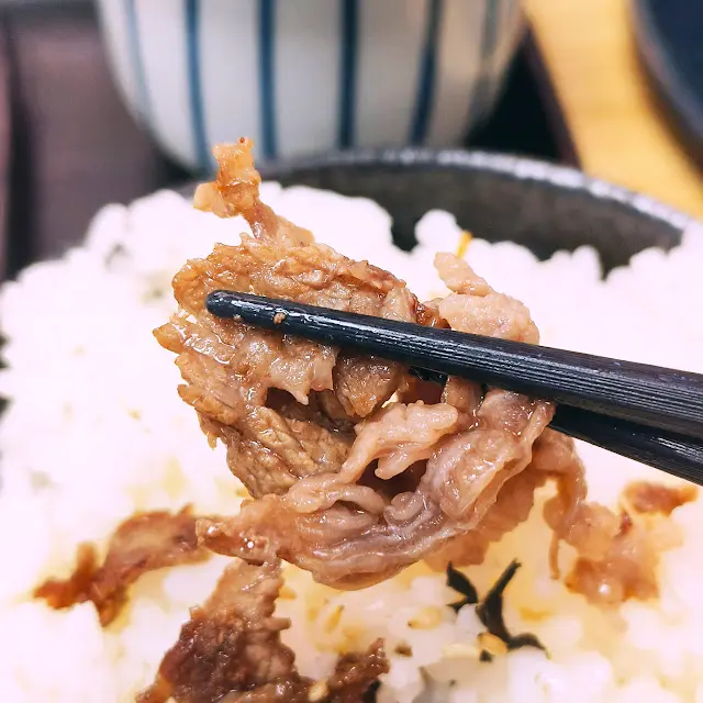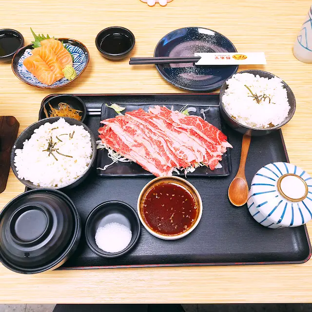 而我就點了燒牛小排定食,再單點一客三文魚剌身(3件)。點餐的時候我還按錯了,免費點多了一碗飯。