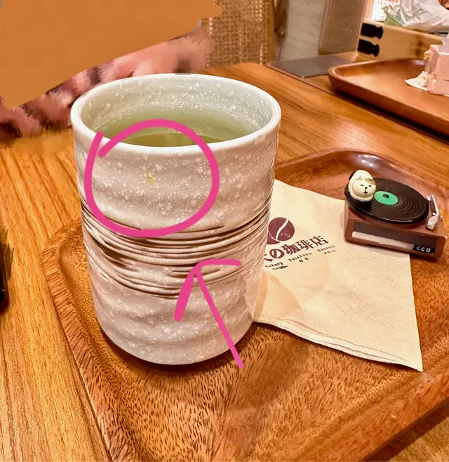-杯子有污跡,未洗乾淨,是可刮下的食物跡,跟店員說了之後他換了一杯給我們,可是等待很久時間,上來的時候茶不是熱的,懷疑只是直接倒進另一個杯子