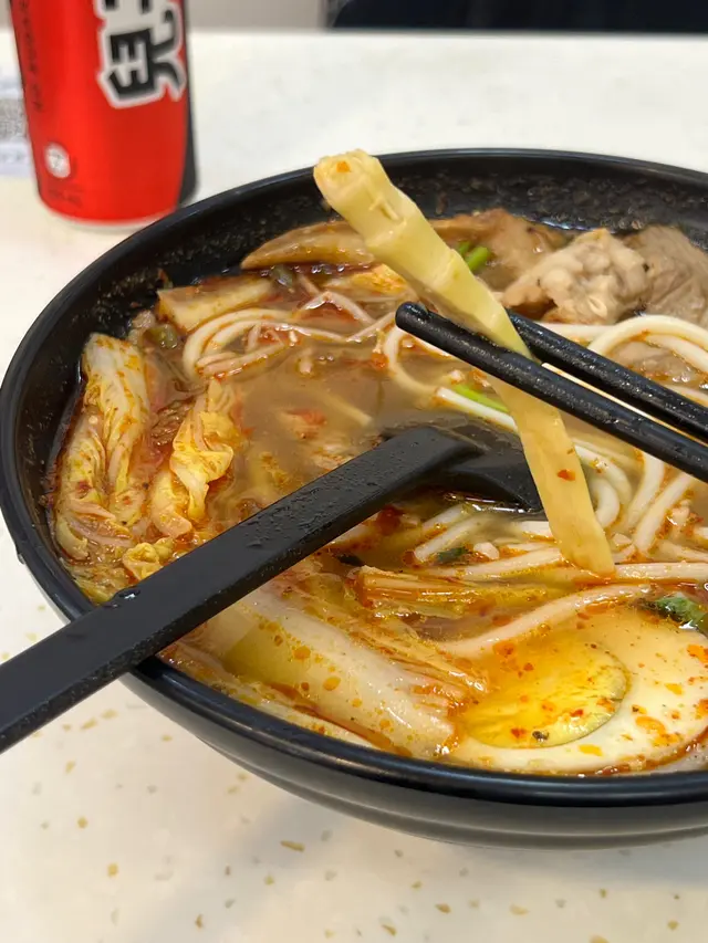位於紅磡的一間小店,王乡妹黔川米線,這碗羊肉麵線真不錯!麻辣湯底濃郁微辣,暖胃又開胃,帶著肉香和藥材味。麵線Q彈有嚼勁,吸滿湯汁更美味。羊肉片嫩滑,胡椒辣椒味濃,白菜和青菜爽脆,口感豐富。滷蛋蛋黃流心,與湯完美融合,香氣濃郁。香菜點綴添清新,味道平衡好吃。加罐可樂,午餐超滿足。
