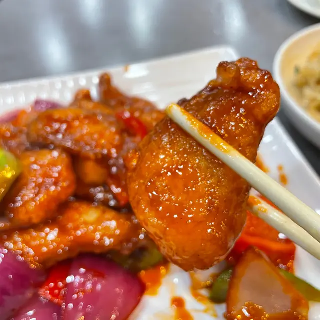 🥢糖醋魚塊:糖醋汁調得幾好👍🏻,好開胃。大大塊魚肉索滿糖醋汁,這是我最愛😍。