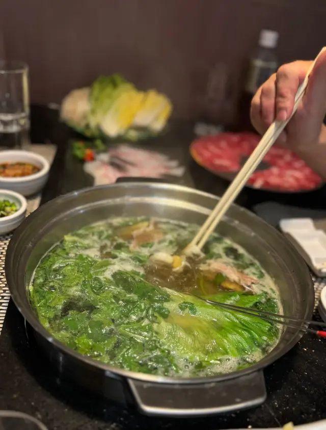 芫茜清新,皮蛋香滑,馬蹄爽脆,為整個火鍋增添了不少風味。