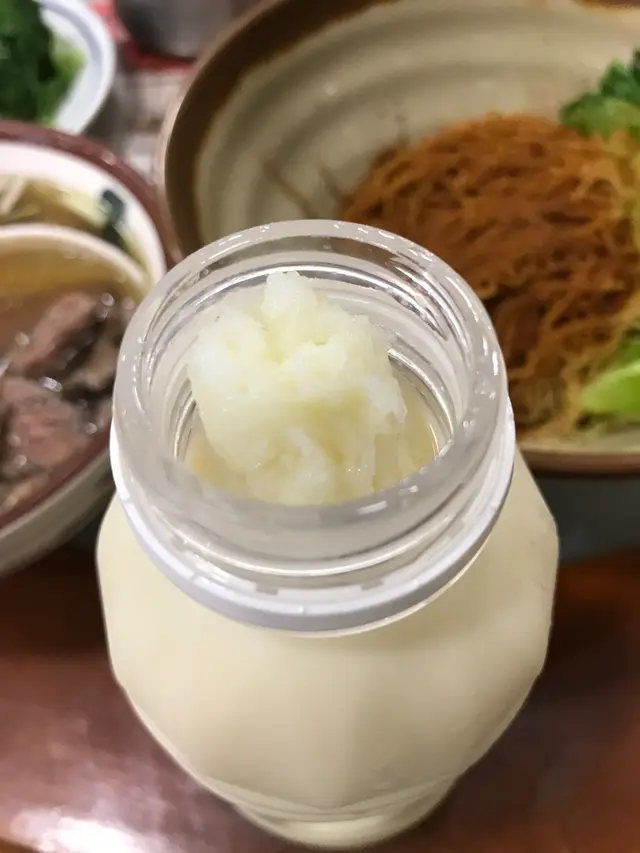 最後吃點時蔬:腐乳通菜,也是新鮮,腐乳濃稠適中。天時暑熱,喝一口冰凍低糖豆漿,冰箱拿出來真的有雪岀沙冰,外帶也適合,香滑且豆香岀色,有驚喜!
