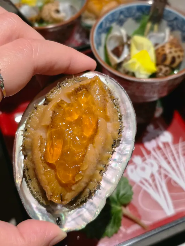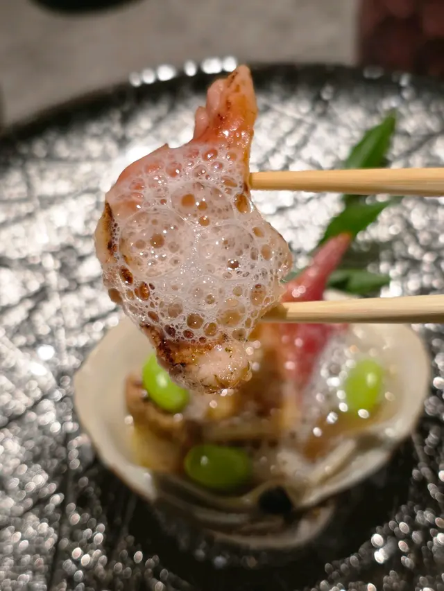 🍣 日本清酒泡沬配鐵板北海道北寄貝:貝類鮮甜可口,清酒泡泡微微刺激,帶出海味的鮮香。