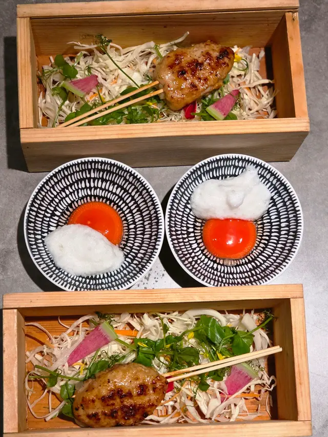 🔥 煙燻西京阿波尾雞雞肉棒配日本蘭王蛋:蘋果木煙燻味香濃,阿波尾雞雞肉多汁富有彈性, 搭配蘭王蛋,完全升華了口感。雞肉棒下的蔬菜吸收了煙燻香氣, 清爽又解膩。
