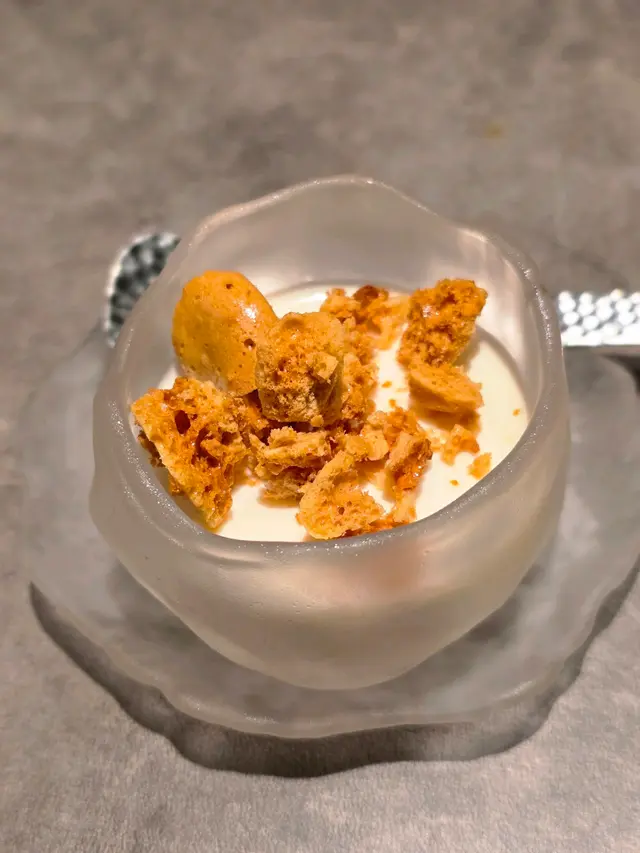 🥣 立鱗金鯛蟹膏牛乳汁:金鯛立鱗香脆無比, 魚肉肉質滑嫩,配搭蟹膏混合牛乳,味道香濃,十分奢華。