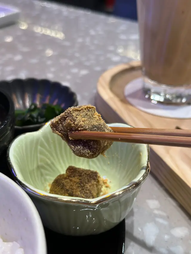 呢個定食啱晒想食飯,又想食串燒嘅人!雞肉棒棒、雞肉串同手羽都燒得好有水準,外脆燒至金黃色,調味唔錯,而且好香口!當中招牌嘅雞肉棒棒用雞髀肉切碎混合香葱、雞軟骨搓成棒狀,外皮燒得香脆,入面充滿肉汁,沾埋蘭王蛋同秘製醬汁,蛋香十足,又滑又惹味!