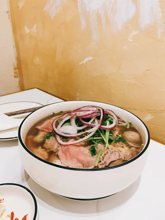 特別牛肉湯粉就有生牛肉、熟腩肉、牛筋、牛柏葉、牛肉丸、牛骨湯頭好飲,加上多芫荽同洋蔥,味道好有層次。