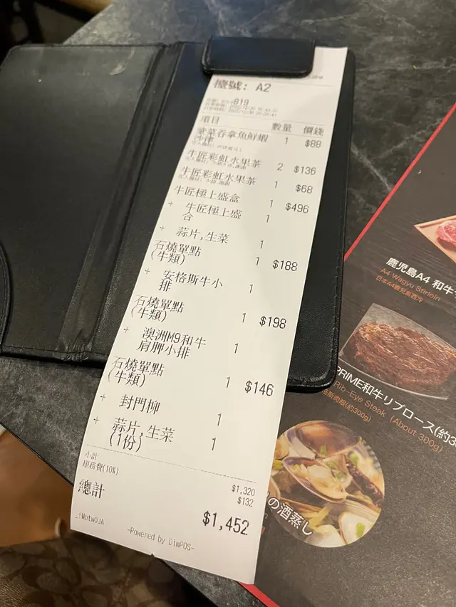 安格斯牛小排 $188、澳洲M9和牛肩胛小排 $198、封門柳 跟 蒜片,生菜 $146