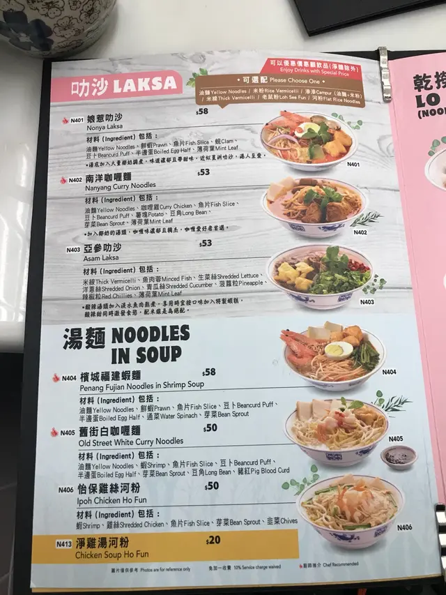 再來個南洋咖哩麵,鍾意辣既一定要試下,湯底夠濃郁亦夠辣,非常刺激惹味,魚片非常爽口彈牙,咖哩雞亦都淋身及入味,配料充足唔會'揸溜灘',朋友仲特登張個麵轉做滲滲(油麵加米粉),增加唔同既口感