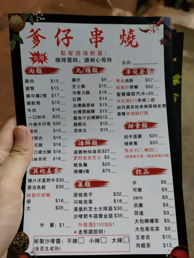 值得推介的晚市宵夜串燒外賣店 Ellen0303等級22024-01-10302 瀏覽 關注 家附近的串燒店,早排外賣過一次,這次路過又被吸引住,做緊promotion,雞牛豬買六送一,上次吃過菠蘿🍍,超級好吃,這次也要買。老闆是個溫柔的叔叔,拍檔是個體貼的阿姨。8串,大概10-15分鐘就ok,老闆仲好nice問要咩辣度,老闆自己調的沙爹醬,有辣有不辣,都好好吃。老闆仲話下次可以wtsapp叫定,之後自取就唔使等。現場有少量座位,三五知己堂食也可以。買單117$,性價比算高,希望小店生意興隆,我繼續有食神燒菠蘿$20以上食評乃用戶個人意見 , 並不代表OpenRice之觀點。1分享值得推介的晚市宵夜串燒外賣店 爹仔串燒 https://s.openrice.com/QrbT0eCydW0檢舉 張貼 評分5味道4環境5服務5衛生5抵食推介美食燒菠蘿$20用餐日期2024-01-06等候時間12 分鐘 (外賣自取)用餐時段宵夜