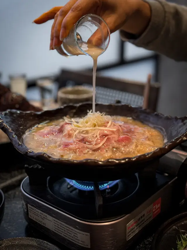 味噌鍋個湯底滾起後再加甘酒粕