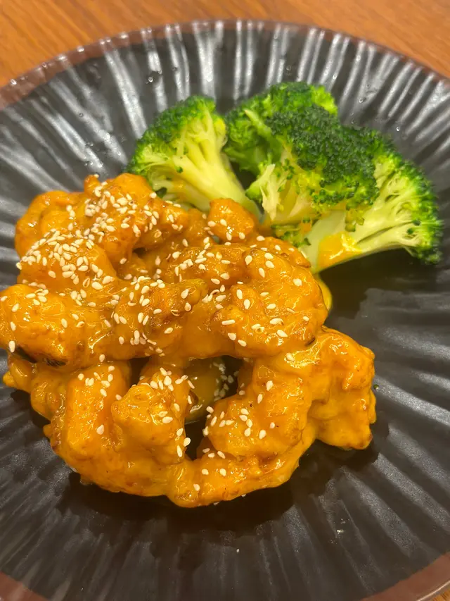 🍽️香芒蝦球︰香芒蝦球成為了這餐的主角,讓我印象深刻。首先,香芒蝦球以其外脆內嫩的口感贏得了我的心。蝦球裡的鮮蝦肉質彈牙,外層裹著金黃的脆皮,搭配上香甜的芒果醬,讓整體味道更加清新,仿佛在夏日中品嚐陽光的滋味。