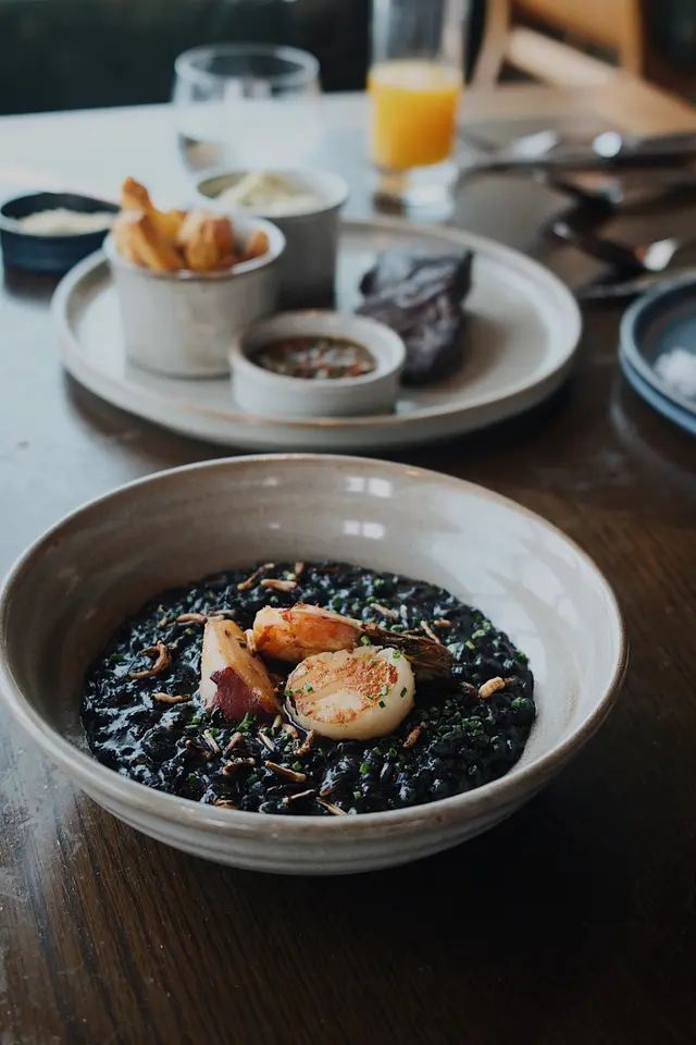 ◍ 墨魚汁海鮮燉燴飯、烏魚子