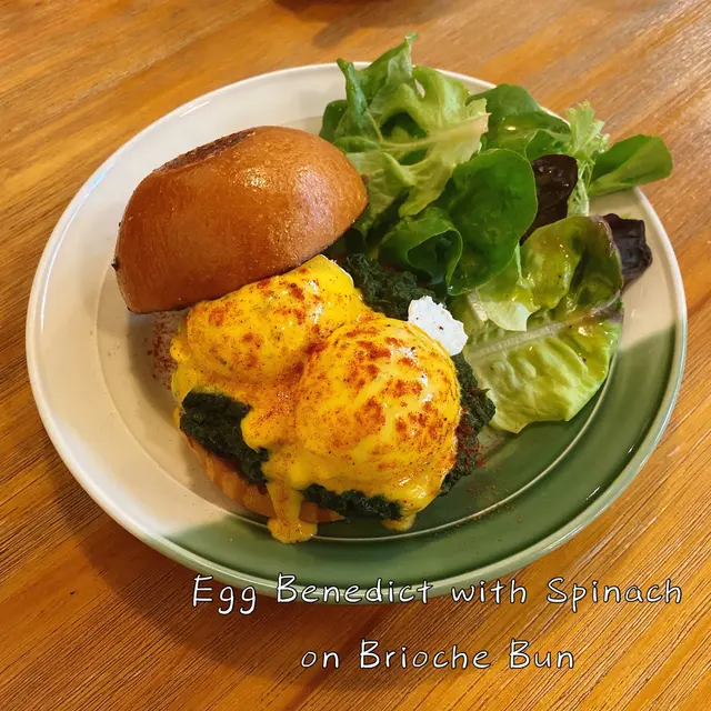 Brew Bros Coffee嘅Egg Benedict with Spinach on Brioche Bun好誘人