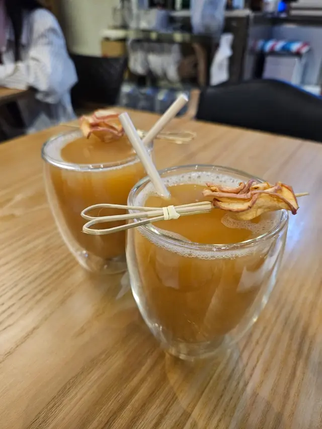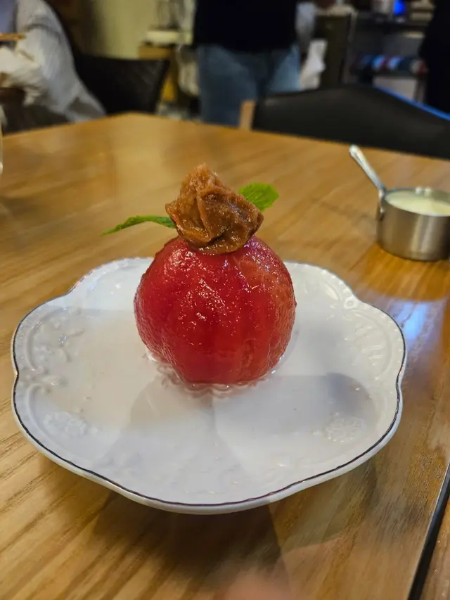 另外還有點小食:梅凍番茄,冰涼酸甜超解膩;秋葵豆腐搭配柴魚和和風醬油,滑溜又開胃。冷壓蘋果汁味道天然無添加,清新解渴👍