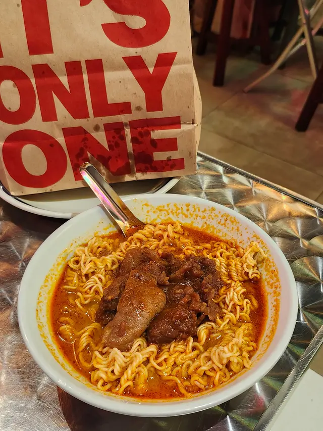 聽說是店家招牌,朋友忍唔住叫咗🙊 究竟同常餐沙嗲公仔麵有咩唔一樣❓ 餐廳加重咗沙嗲濃郁度,辣度都大提升,食落香濃惹味,牛肉一片片份量都唔少