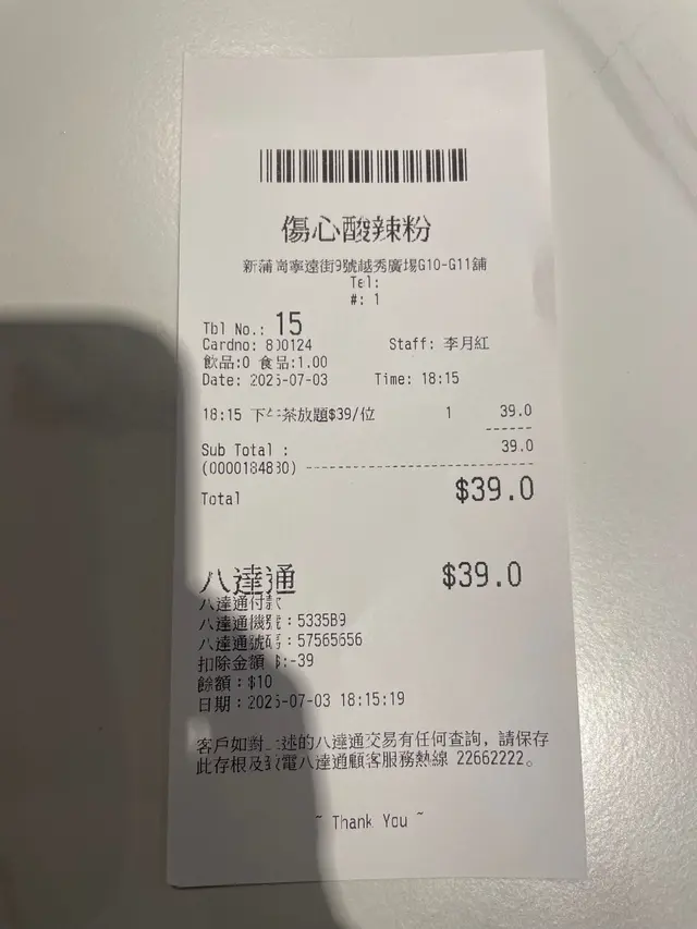 今日自己一個人去「傷心酸辣粉」食個下午茶放題,見寫到19:00完,我18:15入到去,諗住仲有45分鐘點都夠食啦!點知... 伏到一個點啊大佬!
