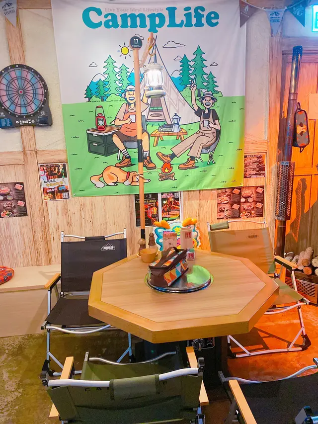 餐廳以露營為主題,餐枱食具都營造出露營的紛圍。讓客人置身大自然之中,休閒舒適,打造高質的生活品味。