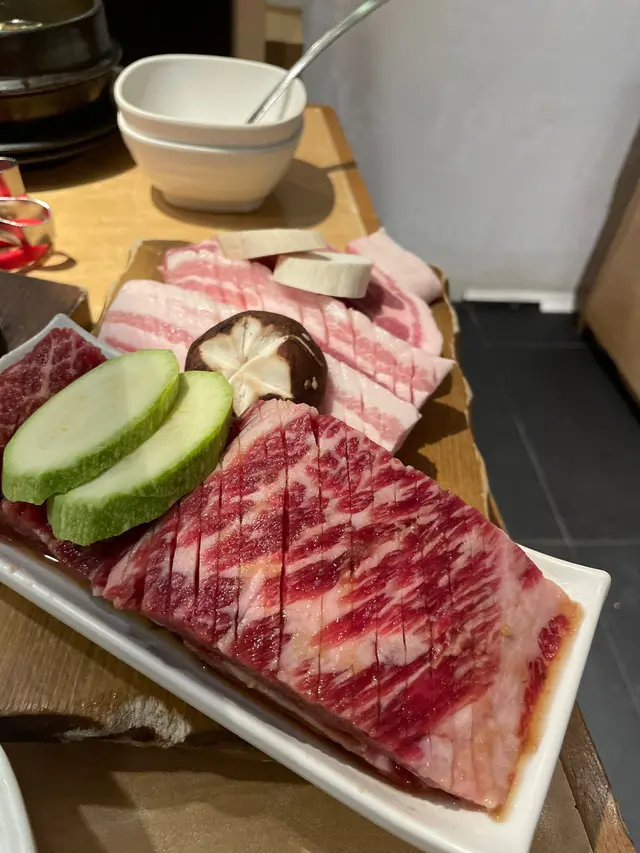 韓燒一定要點五花肉,半肥半瘦的五花肉,版燒得焦脆之後,加再生菜、蒜、泡菜,咁食就唔會咁膩又清爽