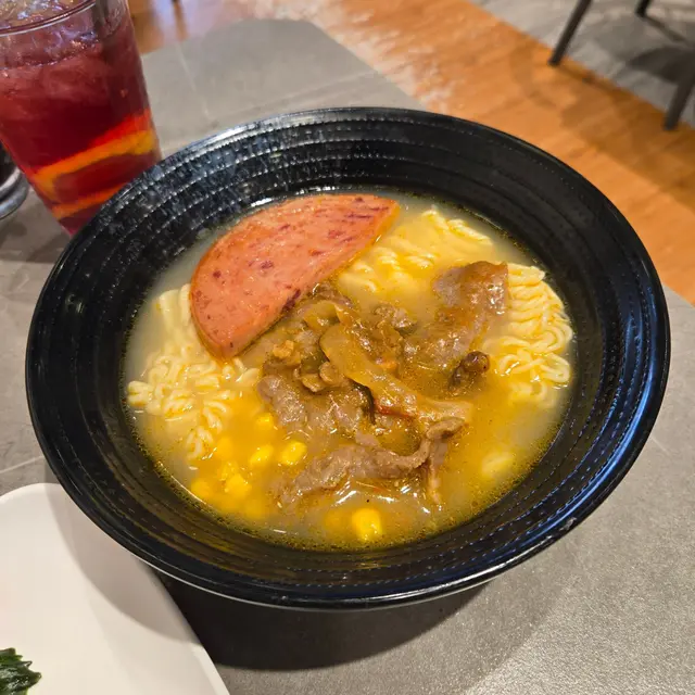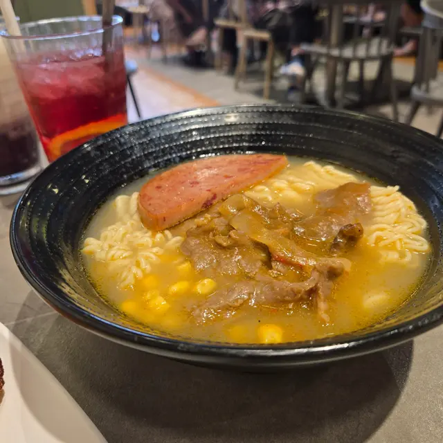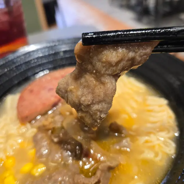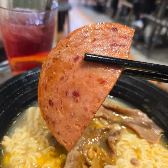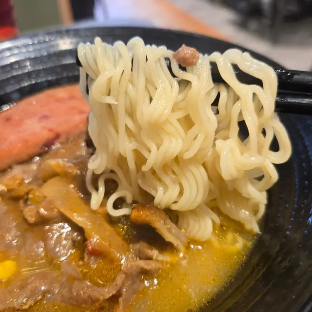 沙嗲牛肉午餐肉即食麵沙嗲濃郁,即食麵裡加有沙嗲醬,吃之前先拌一下讓沙嗲的味道融到湯裡,沙嗲牛肉量挺多,我懶得數有幾塊,牛肉幼嫩入味,不會卡牙,午餐肉煎得不油,即食麵頗有彈性,而且容易吸附湯汁,加上沙嗲濃香,好不開胃。