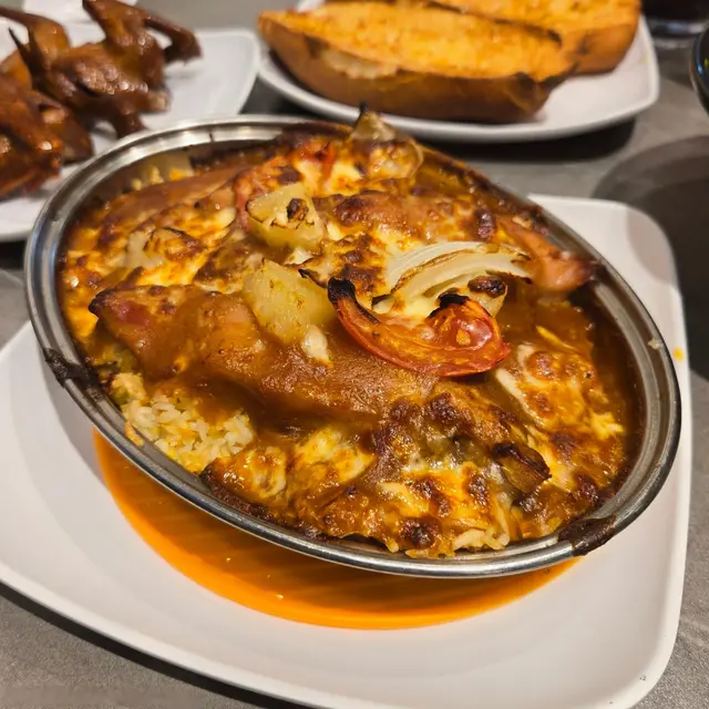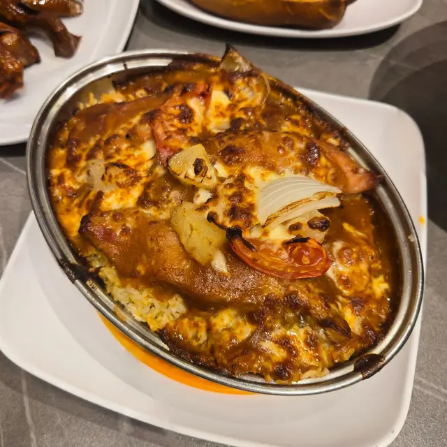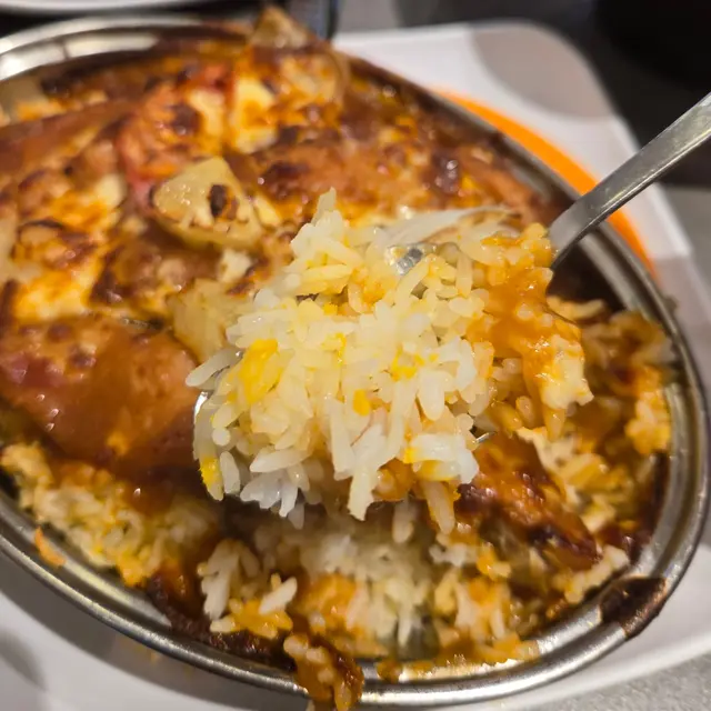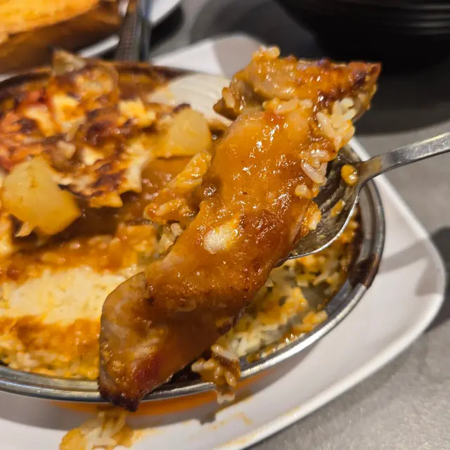 焗意式厚豬扒飯是港人最愛的一道茶餐廳菜式,我有一段時間沒吃過,元朗冰室的焗意式厚切豬扒飯運用大量芝士、蕃茄醬、蕃薯、菠蘿烤焗,光是蕃茄和菠蘿的酸甜,聞了讓人唾液止不住地分泌。厚豬扒厚度十足,肉質細嫩,肉汁豐沛,美味可口。