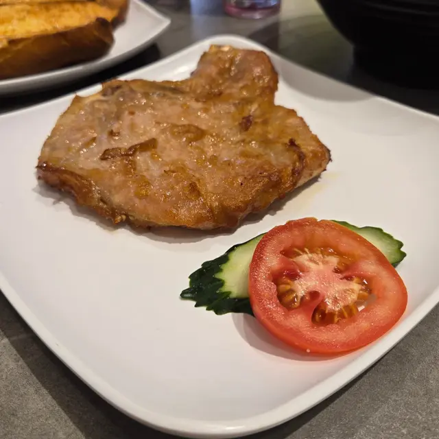 侄兒最期待的滋味厚豬扒,金黃酥香的外表,滋味厚豬扒厚實不會過於乾柴,每塊都是真材實料,元朗冰室使用特製豬扒調味,鹹味平衡得剛好,咬下的每一口真是大滿足,如果是第一次去元朗冰室吃東西不知道吃麼,那就點滋味厚豬扒。