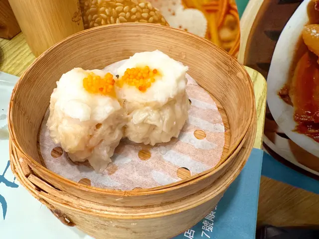 又到我做大胃王嘅時間啦,蟹籽燒賣皇一籠係有兩件嘅,因為師妹唔太鍾意食有蝦嘅燒賣,所以我就一人K.O.咗兩粒!佢嘅燒賣皮唔係一般黃色嗰種嚟㗎,而係好似鵪鶉蛋燒賣嗰種白色皮,裏面嘅蝦肉同豬肉份量十足,而且非常彈牙,不過又無食到肥豬肉喎,個人認為好抵食!